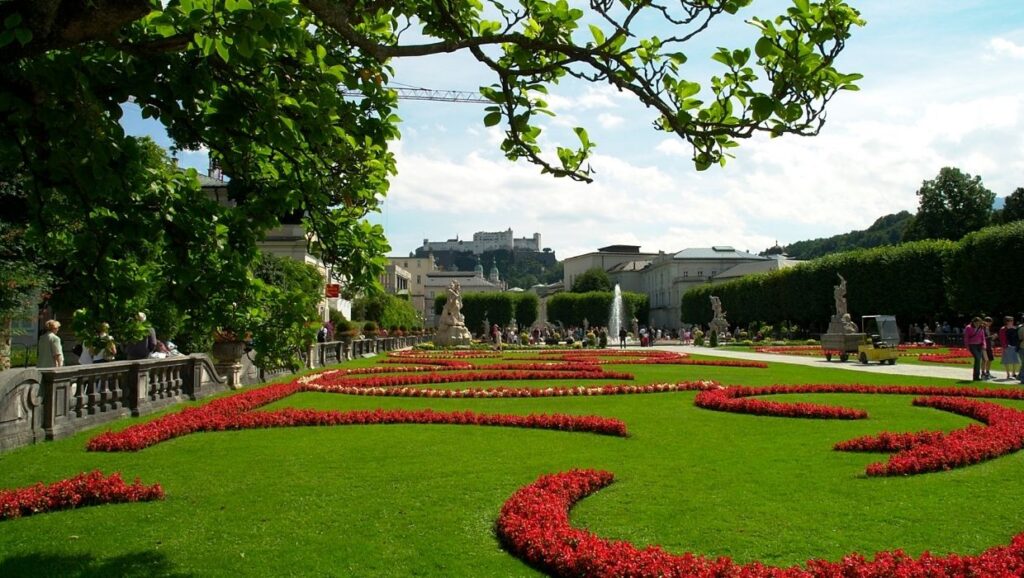 Salzburg posiada jedne z najlepiej zachowanych ogrodów zamkowych w Europie. Mowa o kompleksie ogrodowym otaczającym piękny Pałac Mirabell. Znajdziemy w nim wiele urokliwych alejek i oczek wodnych z fontannami, a całość otoczona jest wysokim kamiennym murem. W miesiącach letnich często odbywają się tu koncerty. Pałac Mirabell jest za to jednym z najbardziej znanych zabytków Salzburga, położonym na wzgórzu nad centrum miasta. Z zewnątrz pałac zdobią freski i statuetki przedstawiające sceny biblijne.